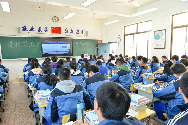 宣传会中,刘医生利用PPT对艾滋病的相关知识进行了宣传展览,并通过与学生互动让大家更牢固的掌握预防知识。她讲到,艾滋病是一个重大传染病,威胁人们健康和影响经济社会发展。我国整体上属于艾滋病低流行国家,但局部地区高发流行。人们对艾滋病的恐慌,造成对感染者的歧视,艾滋病社会歧视依然存在,防治艾滋病知识宣传仍需进一步普及和加强。