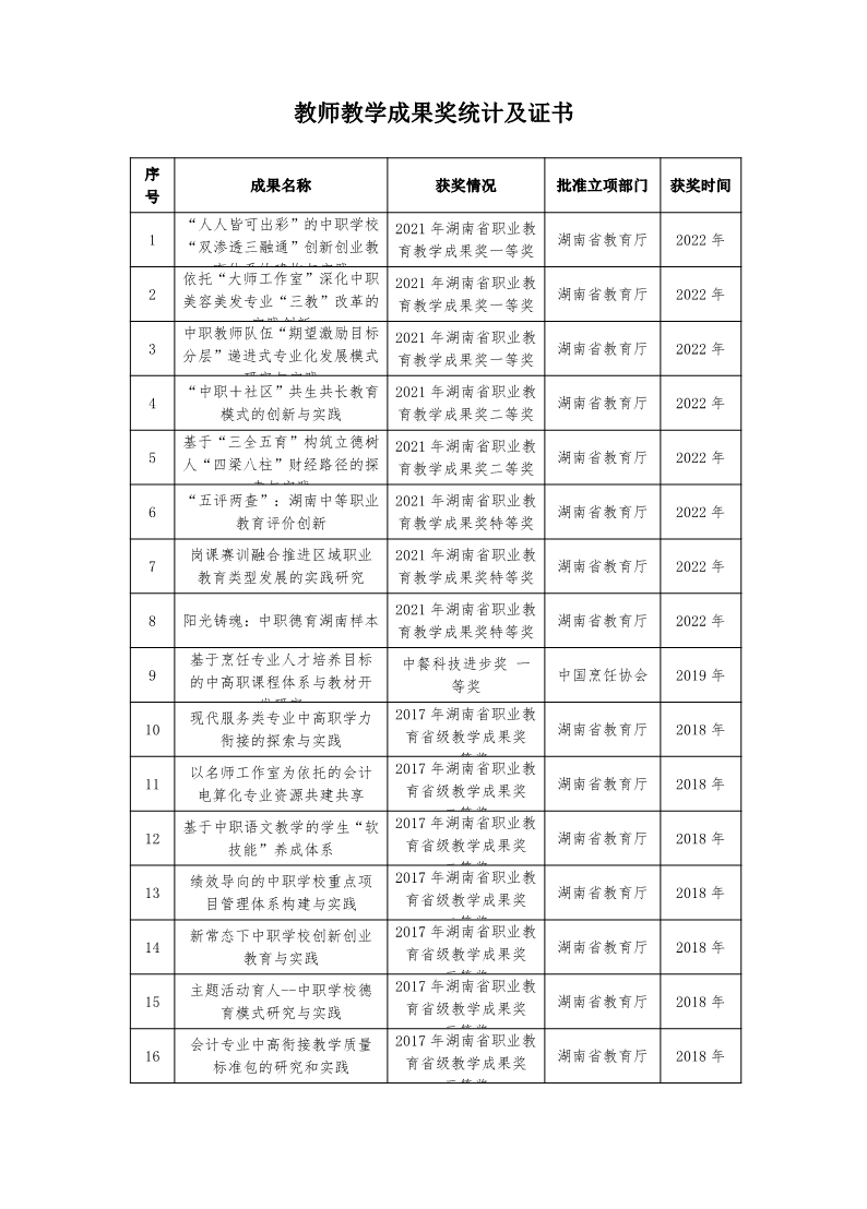 【获奖】教师教学成果奖统计及证书