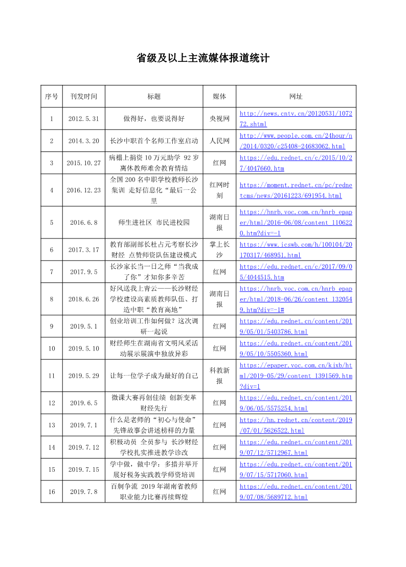 省级及以上主流媒体报道统计