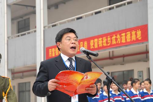 随后,参加长沙市教育系统学雷锋暨创先争优活动推进会的21名同学在国旗下带领全校学生宣誓:决心志愿参加长沙市学雷锋志愿服务队,弘扬雷锋精神,做全面发展一代新人。誓当雷锋精神传人,将雷锋永远留住。