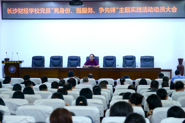 9月14日,我校在报告厅举行党员“亮身份、强服务、争先锋”主题实践活动动员大会,职教城校区全体党员参加。党委书记彭建成主持。