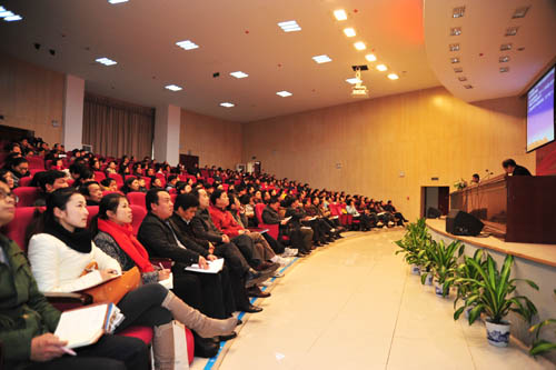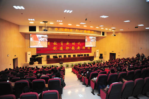 11月29日,长沙职教基地管委会、长沙教育党建城南二片组学习贯彻十八大精神报告会在基地报告厅召开。中共长沙市委党校、长沙行政学院教育长刘国杰教授为与会党员干部作了题为《高举旗帜 继续前进》辅导报告。6163银河国际、长沙商贸旅游职业技术学院、长沙信息职业技术学校、长沙电子工业学校、长沙市美术学校、长沙汽车工业学校等六所学校的校(院)领导班子成员、中层干部和党员同志,以及基地管委会全体干部共计300多人参加了大会。此次报告会由6163银河国际承办,长沙市教育局副局长、长沙职教基地管委会主任王建林主持大会。