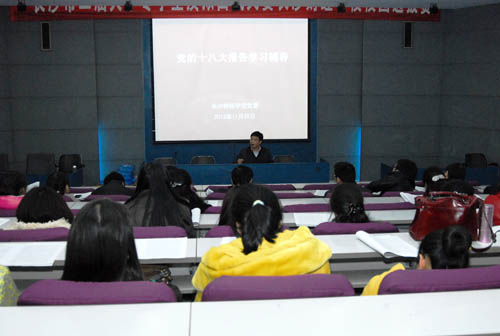 11月8日上午,中国共产党第十八次全国代表大会在北京人民大会堂隆重开幕。我校党政领导、广大师生高度关注这一历史性盛会,通过电视、网络、广播、报纸等多种媒体收听收看大会实况直播,聆听胡锦涛同志所作的《坚定不移沿着中国特色社会主义道路前进、为全面建成小康社会而奋斗》报告。学党的十八大报告在广大师生中产生了强烈反响。各党总支、直属党支部和各分部组织党员、干部和师生、员工通过多种形式在全院上下掀起了学习贯彻十八大报告精神的热烈氛围。