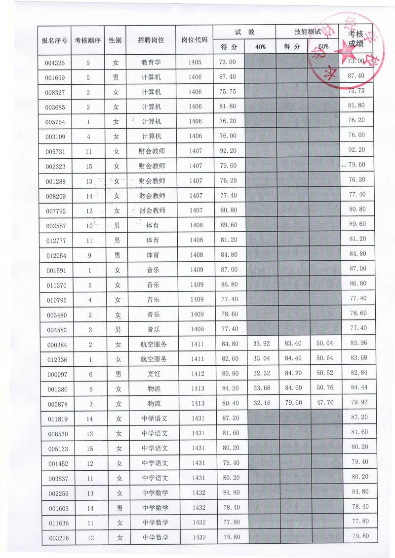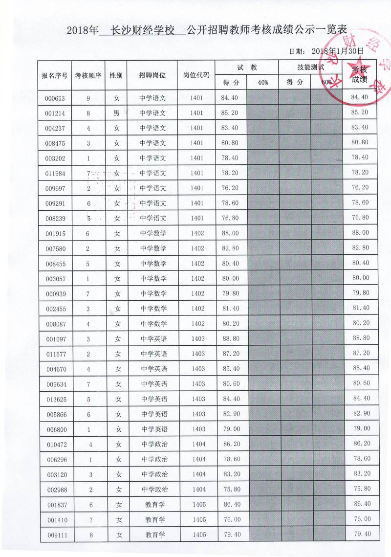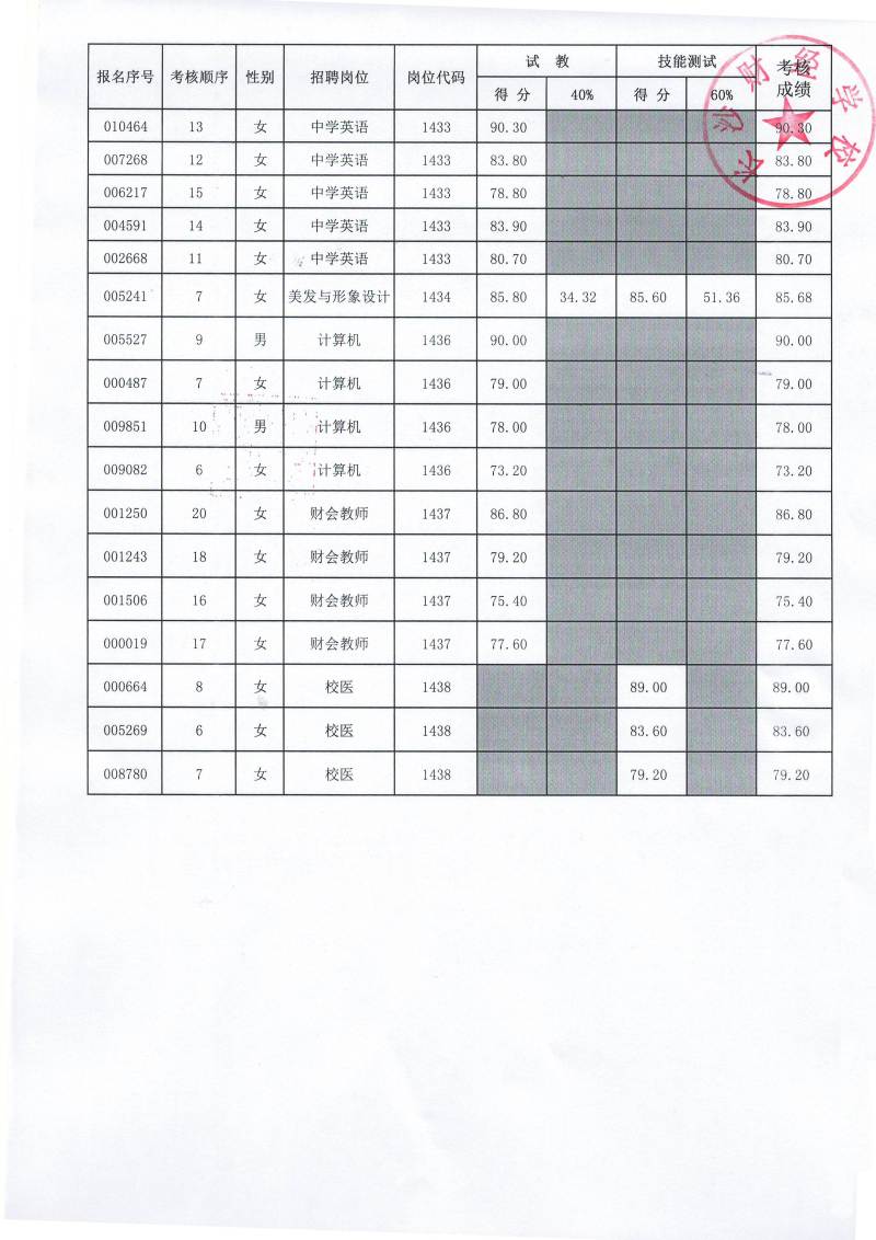 2018年6163银河国际公开招聘教师考核成绩公示