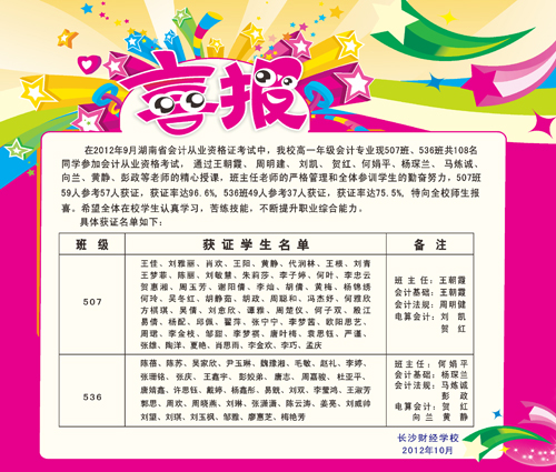 热烈祝贺下列同学通过2012年湖南省会计从业资格证考试!