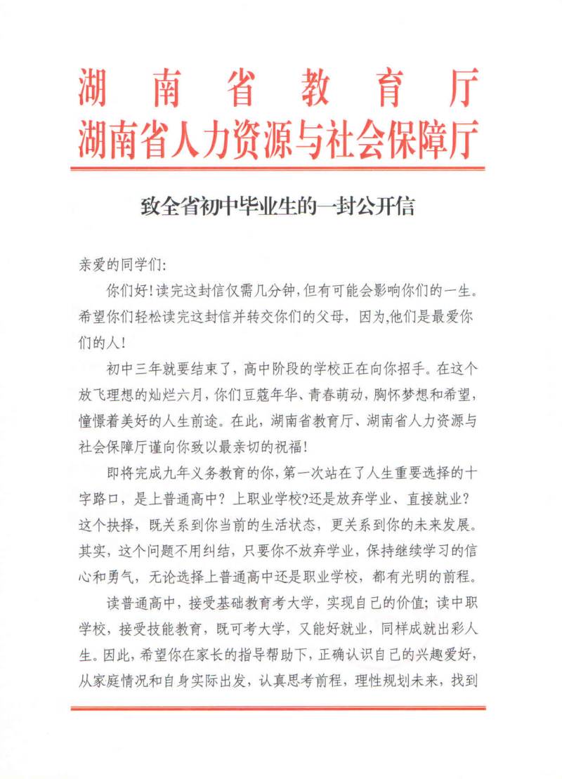 致全省初中毕业生的一封公开信