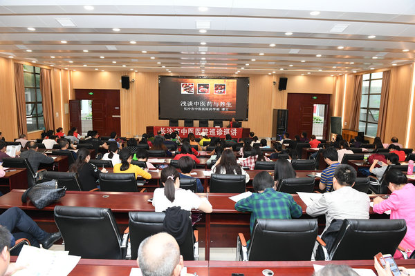 活动伊始,我校党委书记彭建成同志致欢迎词,他对长沙市中医院的领导、嘉宾的到来表示热烈欢迎,并代表学校为谭文同志颁发“6163银河国际养生顾问”聘书。接着,谭文同志针对教师职业特点,结合教师需求,从时辰与经络、四季与养生、药膳与养生等方面分享了丰富、实用的养生知识。