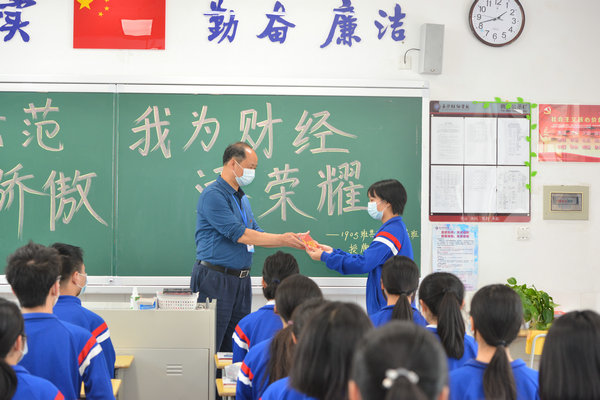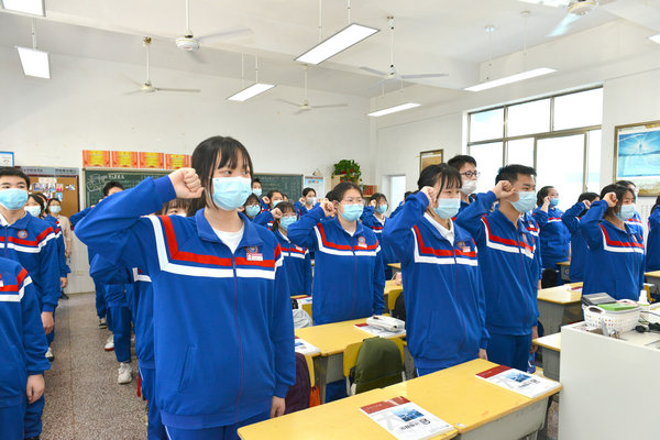 仪式分为五个环节:一是支部书记周知宣读学校创建决定;二是班主任涂红老师宣读示范班创建目标;三是党委彭建成书记授牌并鼓励1905班全体学生规划好自己的学习目标和长远人生目标,努力学习,练好技能,起好年级的引领和示范作用;四是学生代表班长张蕴怡作表态发言;五是全班同学面向国旗,向学校、老师宣誓,立志用自己的实际行动践行“共产党员示范班”的先锋作用。(文/涂红 周知 图/周宏泽)