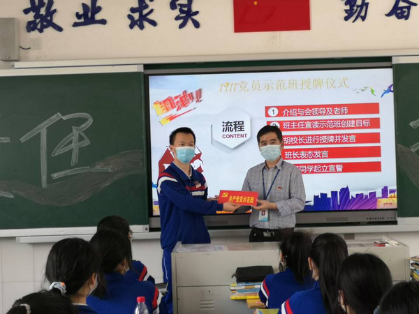 首先,学校第三党支部书记雷薇宇宣读学校创建决定。随后,班主任史君、徐俊雯老师分别宣布各班示范班创建目标。接着,胡南平宣布“党员示范班”活动正式启动,并向两个班的同学寄予殷切希望。胡南平强调,高中三年是苦练本领、增长才干的黄金时期,要有争做先锋的志向,也要有勇往向前的刚健。要在学习和生活中做好每一件小事,事事争先锋,时时当模范。同时,也希望依托本次活动,第三支部党员教师能进一步提高党员的政治思想素质,提升教师的教育教学水平,帮助学生的成长成才。