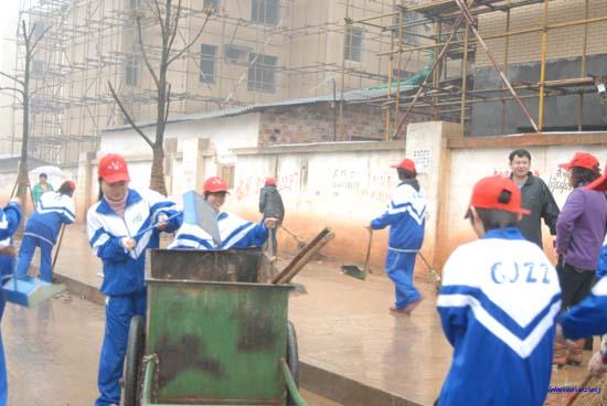 为了全面提高社区文明程度,充分激发和调动社区居民参与芙蓉城管建设的热情,在社区范围内全面推行“全民义工服务”,引领各行各业的人群参与“遵守文明公德,建设精美芙蓉”的义工服务大潮,长沙市财经职业中专学校学生纷纷自愿申请加入“义工”行列,参与锦林社区的“义工”活动。 3月10日上午9:00,部分学生“义工”代表冒着大雨,参加了锦林社区的“义工”活动的启动仪式和第一次义务劳动,同学们的良好表现得到了锦林社区全体人员的高度赞扬。