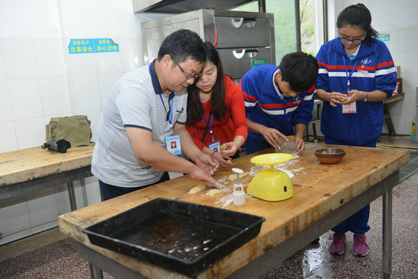 湖湘文化是中华文化的多样性结构中的一个独具特色的组成部分。近百年来,随着湖湘人物在历史舞台上的出色表演,湖湘文化已受到世人的广泛瞩目。本次活动为现场操作体验活动,首先由烹饪教研室李琪老师给大家讲解并示范月饼的制作方法,然后学校党委书记李志彬和副校长冯庆珍分别带领青年老师和学生代表一同体验制作月饼,“你来和面,我来切;你来做陷心,我来摆模具”大家协同配合,一排排“财经月饼”出炉!