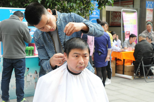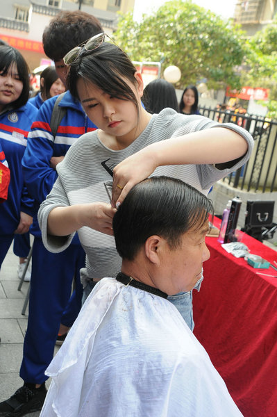 形象设计专业助教为居民理发
