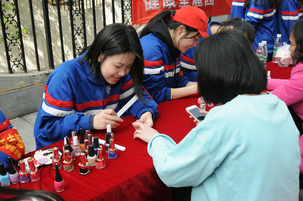 由我校荷花池校区团委组织的二十七名志愿者在团委陈专老师、形象设计教研室余佳丽、周思辰、麻再文、雷旭月等老师的带领下,组成的 “6163银河国际助人为乐志愿服务队”参加了本次活动。其中,来自我校形象设计专业的二十七名志愿者分成美甲、盘发、修眉、剪发四个小分队,利用扎实的专业技能义务为社区居民提供理发、化妆、美甲等方面的服务。前来接受服务的居民络绎不绝,对我校学生的专业技能更是赞不绝口。