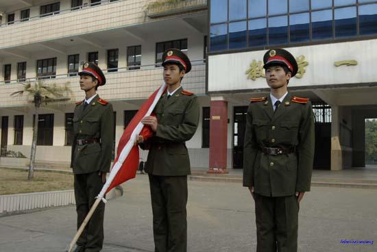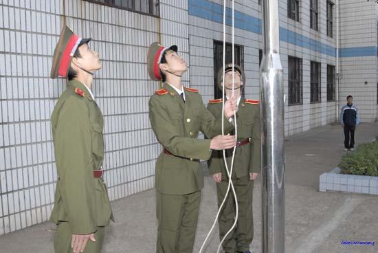 为了进一步加强爱国主义教育,规范学生的行为,本学期学校对国旗队成员重新进行了选拔,在全校范围内选出了思想素质高的男生成为国旗队员,并进行了出旗、升旗时动作要令的培训,给国旗队员配备了统一的军装。气宇轩昂的国旗手是升旗仪式上几千师生注目的焦点,当一名令人羡慕的国旗手自然就是每位同学的向往。(文/周仕毛 摄影/赵建交)