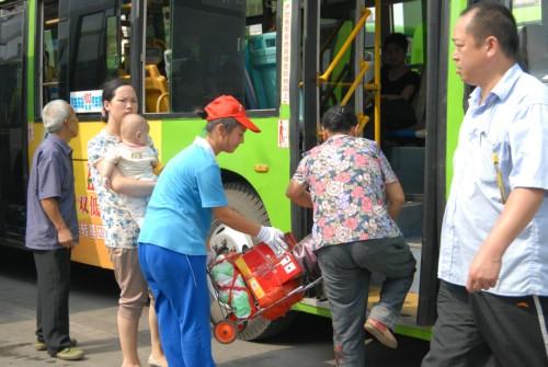 志愿者帮乘客提行李