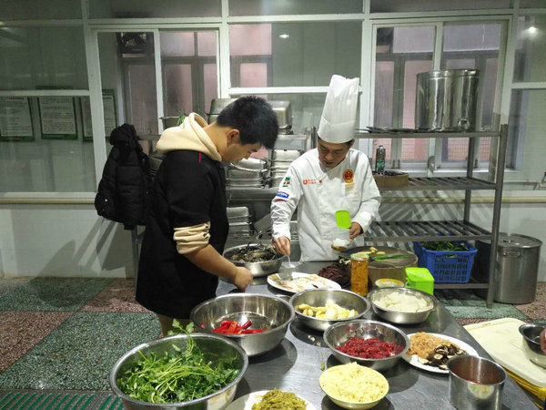 清晨,走进社区居家养老服务中心,聂大师带领他的学生们正在做着餐前的准备工作。他们摘洗蔬菜,斩切荤腥,清理灶台,预制盘饰,忙得不亦乐乎。