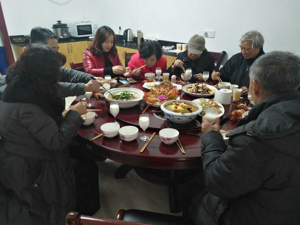 中午,温馨的传统团圆宴开席了。餐厅内,餐桌依次排开;红烧墨鱼、红煨肘子、蒜茸大虾、口蘑菜心……一道道佳肴摆上餐桌。数十名社区的老人围坐在桌旁,聊着家常,品尝着美味。工作人员轮流为这些空巢、孤寡老人布菜、盛饭。老人们品尝着聂大师“私人定制”的美味菜肴,享受着工作人员无微不至的服务,幸福之情溢于言表。看着老人们一张张幸福的笑脸,参与活动的学生们都说,给老人们送上温暖,让他们不再孤独,即便是牺牲双休日,也是值得的。