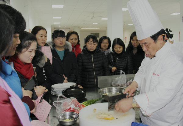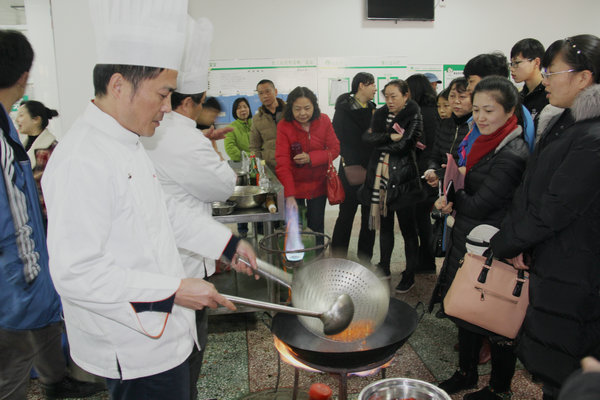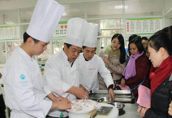 本次活动,主厨的是来自我校烹饪专业的聂波主任和邹明德老师。聂波老师是我校的国家级骨干教师,他曾远赴波兰等国,出任我国驻外使馆大厨。从湘菜大师到全国烹饪大师,聂老师的精湛技艺曾征服无数老饕的胃。邹明德老师是我省著名湘菜大师,也是我校的知名专业教师,曾数次受邀任职于德国星级酒店。邹老师从教多年,教学风格朴实,教学经验丰富,颇受学员的欢迎。