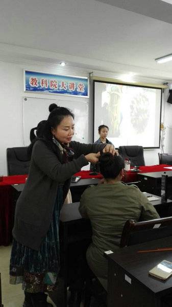 刘老师给学员展示盘发技巧