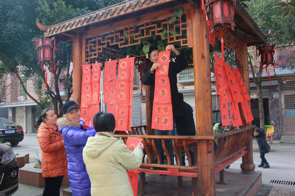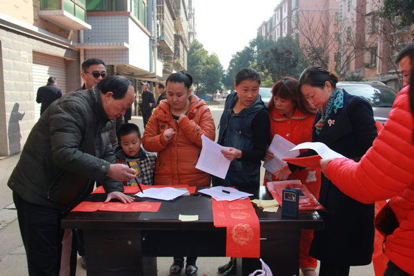丹凤来仪,金鸡报晓,中国人最重要的传统节日——春节即将来临,家家户户张灯结彩、灯火通明,贴对联更是最重要的传统民俗形式之一。值此热闹之际,我校培训中心于元月22日携手雨花区白田社区送吉祥春联到社区,给新春佳节之喜添上一笔浓墨重彩。