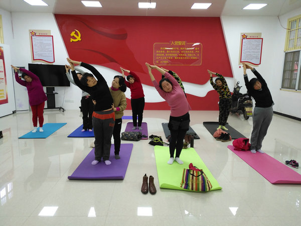在舒缓的音乐中,居民们在唐老师的指导下,盘坐于瑜伽垫上,双目轻闭,双手以瑜伽智慧的手势,撘放于双膝,开始进行瑜伽的冥想、呼吸练习。工作的压力、生活的烦恼、身体的疲惫都随着瑜伽深而缓的一呼一吸释放。接下来,唐老师现场教授居民们进行瑜伽体式的习练。练习体式之前,唐老师再三叮嘱大家,习练瑜伽体式时,要量力而行,不要勉强自己的身体,不可产生攀比心态。习练体式时,唐老师先示范,然后以轻柔和缓的语音引导学员们进行练习,并不时至他们身边予以一对一的指导。每一次课,唐老师都是认真对待,课前认真备课,授课时细心讲解,耐心纠错。两个月二十课时的瑜伽课程结束时,居民们纷纷为教学风格严谨的唐老师点赞,同时也对学校的这一便民举措赞不绝口。他们说,“财经学校为我们社区居民免费上课,不用花钱,不用跑远路,在自己的家门口就能上学,真是太好了。”