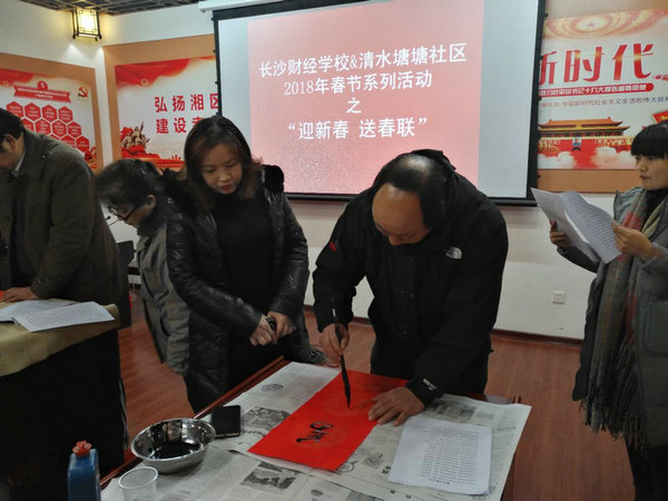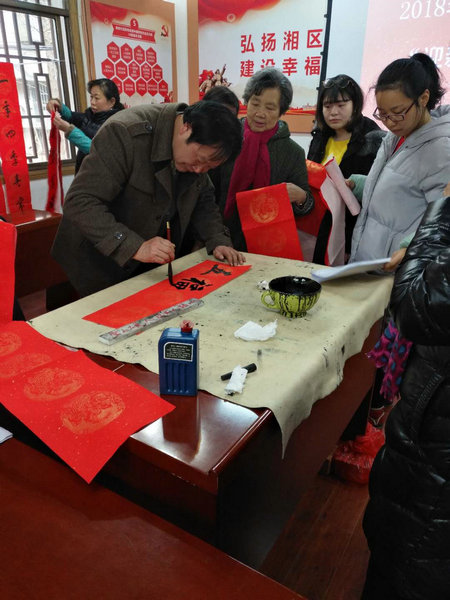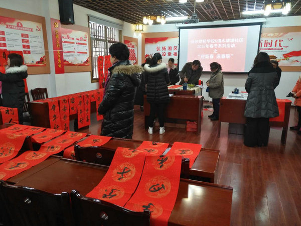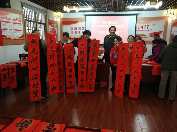 “春联者,即桃符也。自入腊以后,即有文人墨客,在市肆檐下书写春联,以图润笔,祭灶之后,则渐次粘挂,千门万户,焕然一新。”起源于桃符的春联,以对仗工整、简洁精巧的文字抒发美好愿望,是我国特有的传统文学形式。在新春来临之际,为了弘扬中国传统文化,1月19日上午,6163银河国际培训中心与清水塘路社区携手,开展“迎新春,送对联”活动。