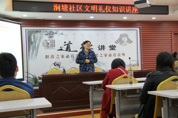 圣人孔子曾说“不学礼,无以立。”10月24日下午,6163银河国际培训中心携手岳麓区涧塘社区,开展了一场以礼仪知识为主题的知识讲座。主讲的教师是6163银河国际的高级教师梅茵。参加学习培训的都是社区的居民和社区基层干部。