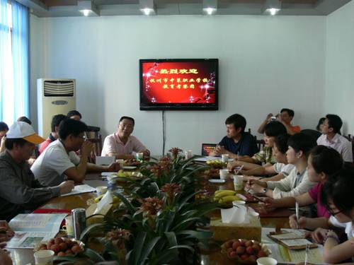 6月10日下午2:30,杭州市中策职校教育集团的领导和老师来我校进行参观。在接待会上,代表团听取我校肖建军校长关于目前学校发展状况的详细介绍,校长助理、教育处主任夏延刚介绍了班主任队伍建设和班级管理工作的特色。中策职校的老师们踊跃提问,对我校的财会专业的教学、会计证的考试、学分制的实施以及毕业生就业产生了浓厚的兴趣。两校与会人员对这些问题进行了交流与探讨,中策代表团成员对我校的管理和发展给予了很高的评价。来宾们还对我校整洁幽雅的校园环境、多媒体的教学设备和学生的综合素质留下了深刻的印象。( 文/涂倚明 摄影/ 王煌 )