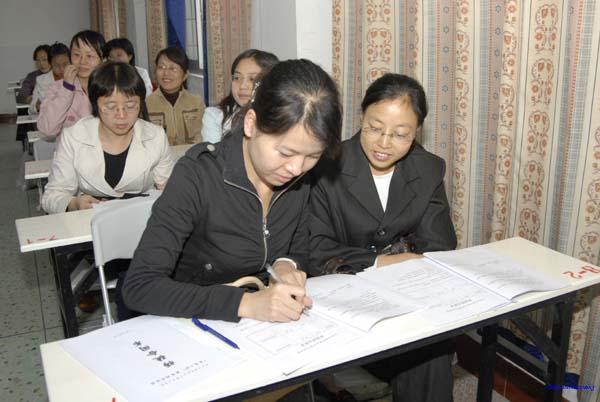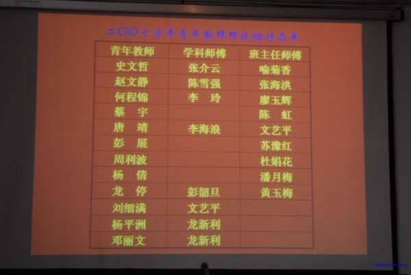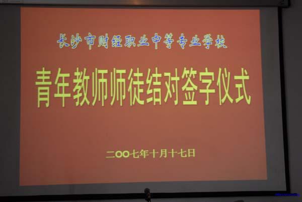 在“创建省级示范性职业学校”强大动力的推动下,长沙市财经职业中专学校赋予了学校传统项目“签定师徒合同”新意。10月17日下午,全校50位教师在电教室举行隆重的师徒结对签字仪式。