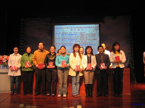 4月3日下午4:15长沙市财经职业中等专业学校2007年教育科研成果表彰大会在四楼会议室隆重召开。会议由彭建成副校长主持,黎辉书记宣读《2006——2007学年度学校教育科研成果表彰决定》,学校领导分六批次向获奖教师代表颁奖。
