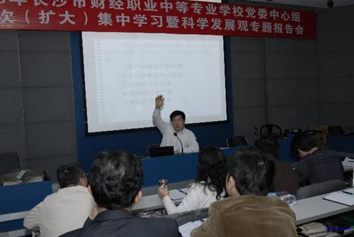 龚教授的讲课生动风趣,他从科学发展观形成的客观基础、科学发展观的历史定位、准确把握科学发展观的科学内涵和学习实践科学发展观的必然要求等方面展开讲解,并就职业学校如何贴近长沙两型社会发展需要,深入推进教学改革为学校指明了道路,全体参会人员都感到受益匪浅,打开了破解教学改革难题的思路。(撰稿:陈智球摄影:刘首飚)