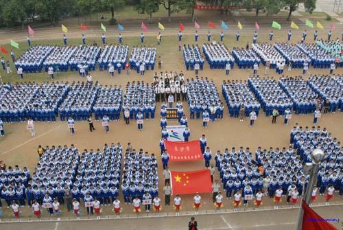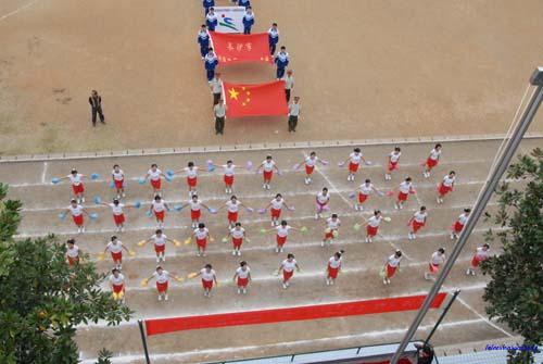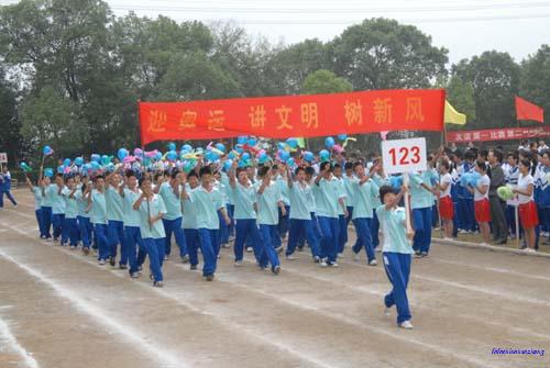 在学校领导的高度重视下,经过教育处和体育组全体老师的精心策划和周密布置,学校第三十七届校园田径运动会共有28个项目、近1400名运动员参加。在隆重热烈的开幕式上,肖建军校长致开幕词,黎辉书记宣布运动会开幕,在国旗、校旗、彩旗和鲜花的引导下,42个班级方块队的学生精神抖擞,同学们决心用奥运的精神、顽强的意志、优异的体育成绩迎接2008北京奥运。