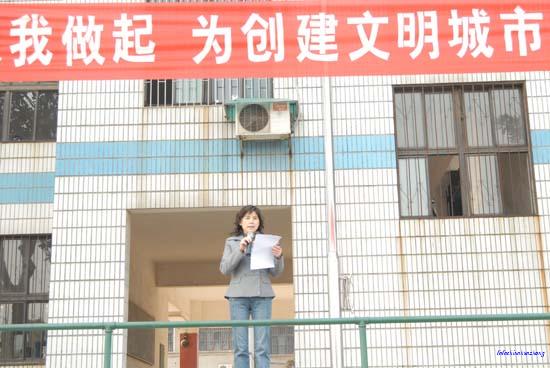 2008年3月3日早上7:40分,灿烂的朝霞冉冉升起,长沙市财经职业中专学校全校师生已经整齐列队在操场举行升旗仪式,仪式上,学校办公室王海燕主任作了国旗下讲话,为2008长沙创建全国文明城市对全体学生进行了再动员,她倡议:从我做起,为创建全国文明城市争光添彩!