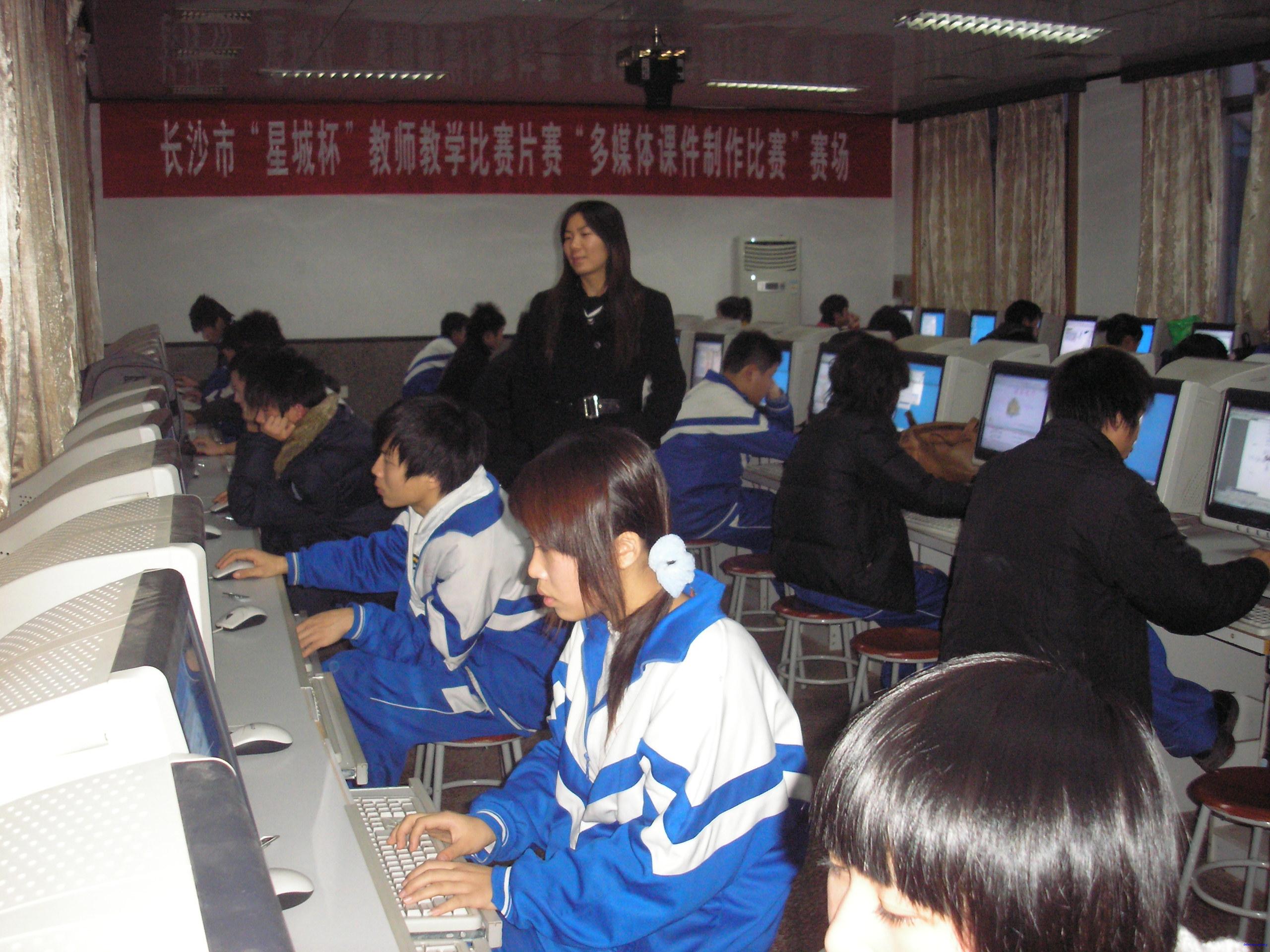 图为我校学生正在进行电脑小报制作比赛。(撰稿:贺红)