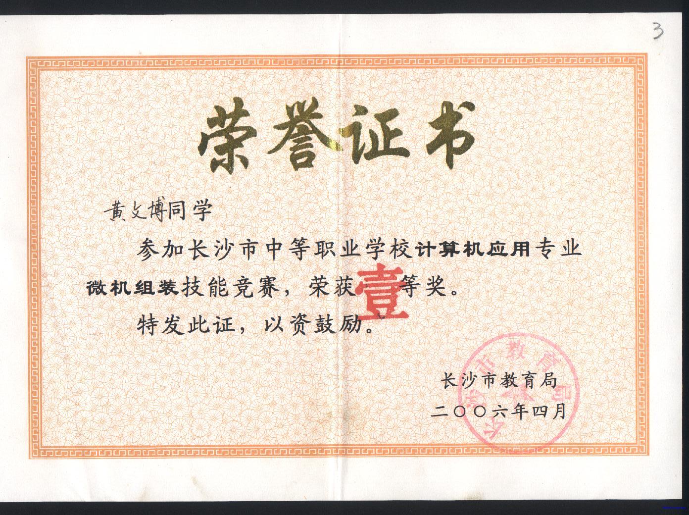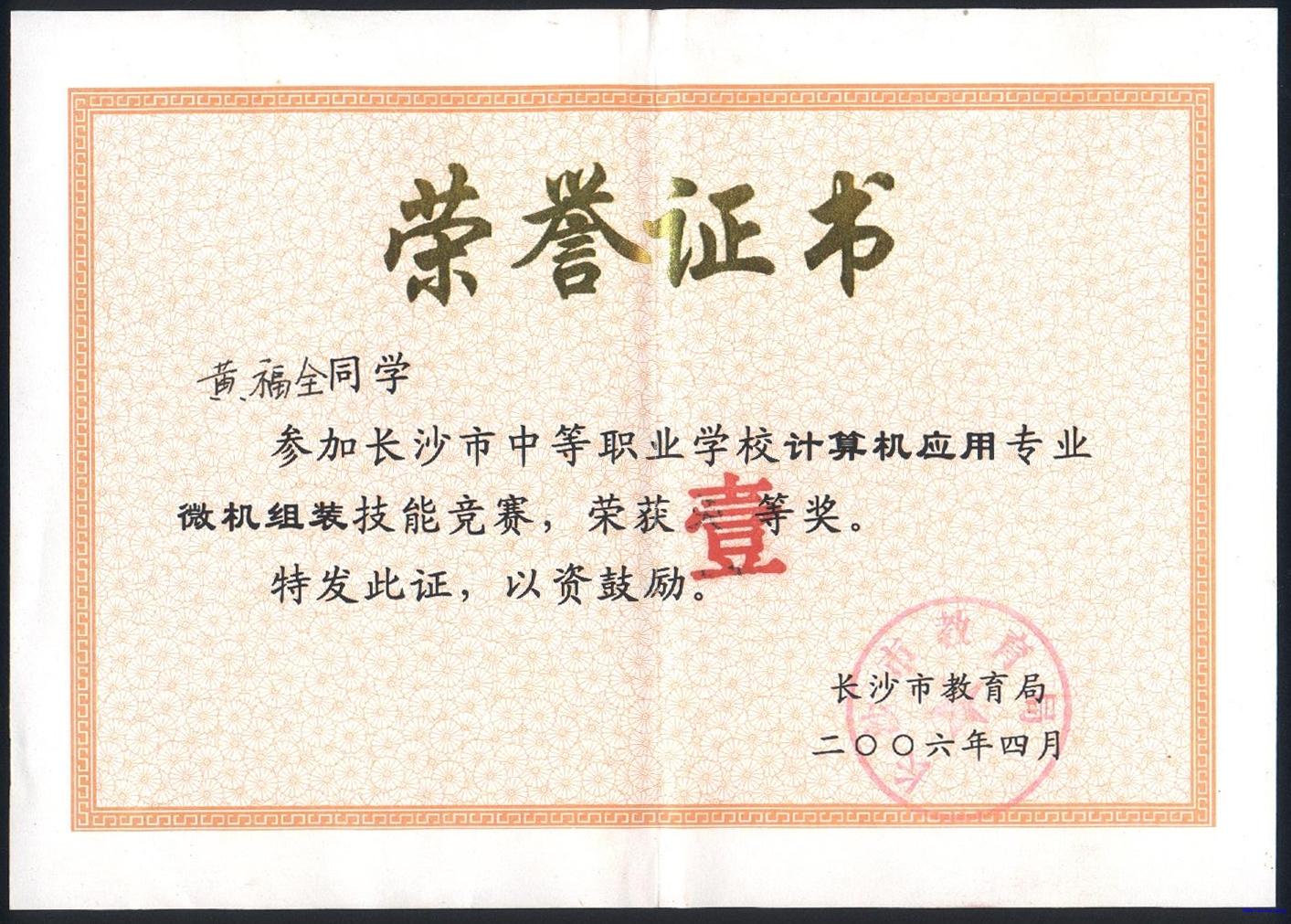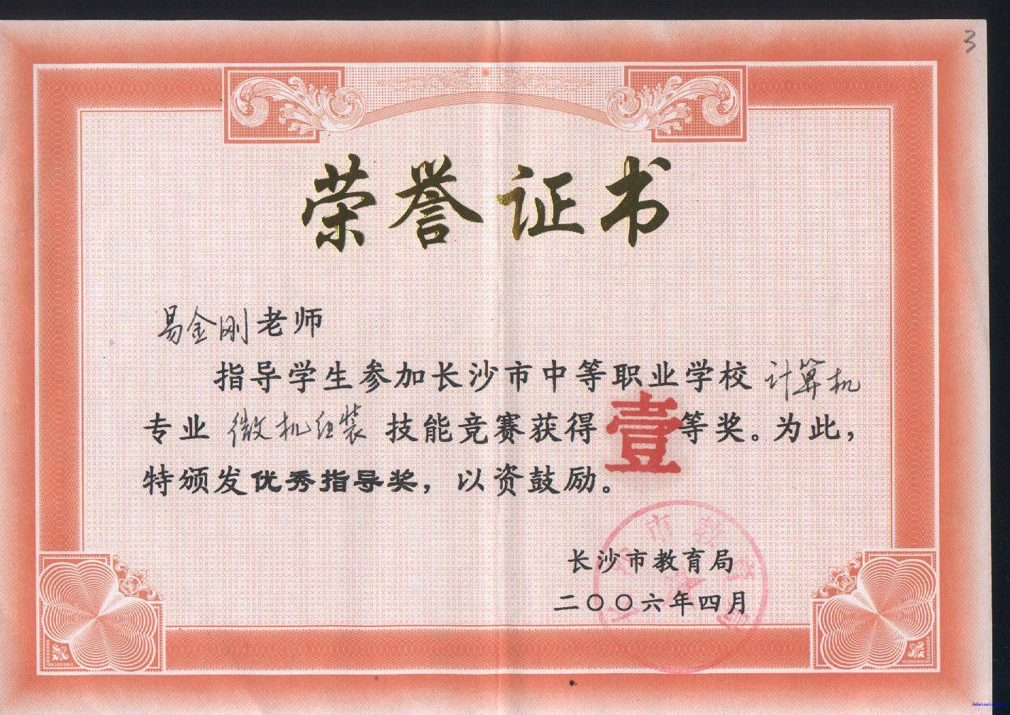 2006年4月指导学生参加市技能比武获奖情况