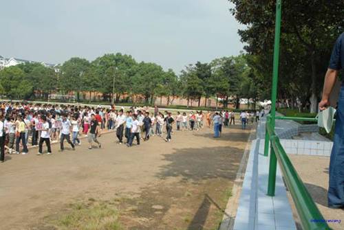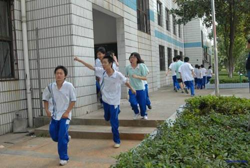 在突发灾难来临时,教室、办公室等场所不能保证师生安全,只有组织紧急疏散到安全场所避难,才能确保师生生命安全。9月1日,开学第一天,长沙市财经职业中专学校就组织了这样一次紧急情况下的逃生演练。一声警报拉响,老师们就主动自觉地撤到各个通道门口和楼道拐角,指挥并督促学生有序、迅速地奔跑到安全地带。整个活动组织有序、撤离及时、效果良好。 (文/王海燕  摄影/胡忠湘 赵建交)