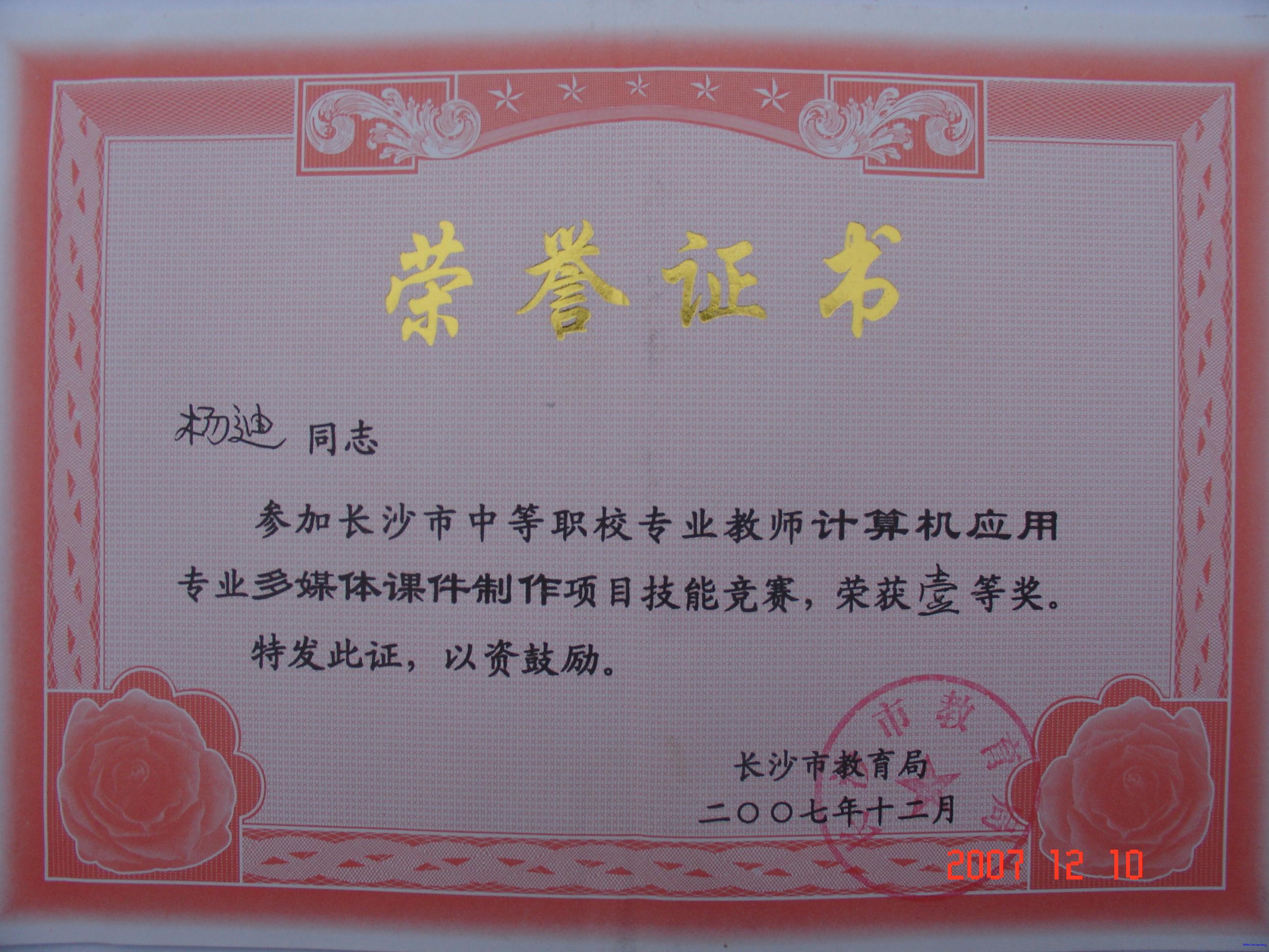 计算机专业(包括网络及应用、多媒体课件制作)获团体一等奖,贺红、易金刚、明添老师获网络及应用一等奖,杨迪老师获课件制作一等奖,蔡宇获课件制作三等奖。
