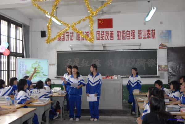 “五星红旗,我们的骄傲”系列活动——主题班会 来源: 发布时间:2007-10-13 00:00:00 浏览次数: 次 【字体:小 大】 10月12日(星期五)下午第二节课,长沙市财经职业中专学校举行隆重的主题班会——五星红旗,我们的骄傲。 这次主题班会,形式多样,气氛热烈,有知识讲座、有知识抢答、有歌曲联唱、有才艺表演等。通过主题班会,同学们了解了国旗的含义,看到了祖国的强盛。本次主题班会班主任老师非常重视,各班准备充分,有详细方案,教育处主任组织教育处成员对各班班会进行了检查,对班会举行得特别好的班级给予了表彰鼓励。(文/周仕毛 摄影/赵建交) 班会现场 知识竟答 革命歌曲大比拼 强大的祖国,我们为你自豪! 分享到: 【打印正文】