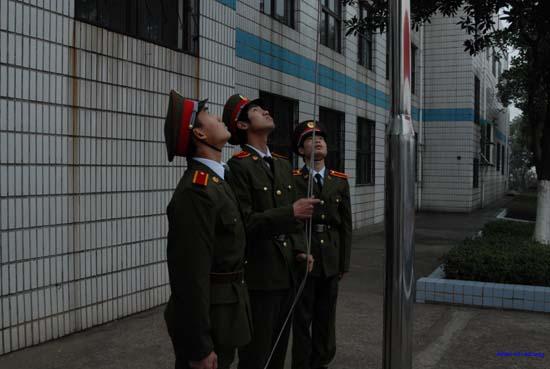 目视着庄严的五星红旗冉冉升起