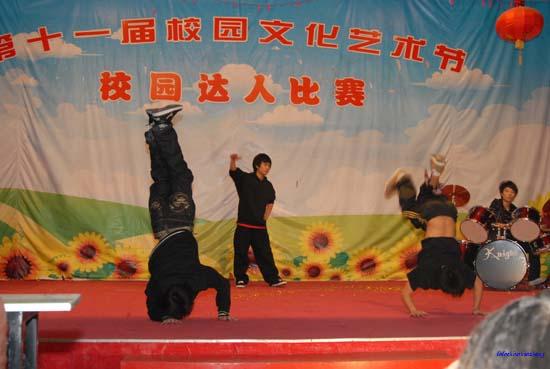 校园文化艺术节新项目——“校园达人” 来源: 发布时间:2008-12-26 00:00:00 浏览次数: 次 【字体:小 大】 12月19日下午,长沙市财经职业中专第十一届校园文化艺术节新设项目之一,校园达人决赛在学校多功能活动室隆重举行。经过残酷的初赛和复赛,共有16个节目进入到最后的决赛,各选手都亮出绝活,争当“达人”。决赛后,评选出了“民族舞达人”、“街舞达人”、“拉丁舞达人”、“古筝达人”、“琵琶达人”、“吉他达人”、“京剧达人”、“朗诵达人”、“表演达人”。112班的街舞团队荣获本次比赛第一名。(文/马炼诚 摄影/赵建交) 分享到: 【打印正文】