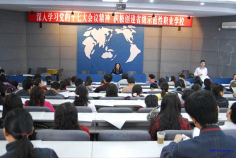 为庆祝党的十七大胜利召开,深入开展文明创建活动,积极配合市委宣传部、市教育局等八单位联合开展的首届长沙市“感动星城?十大魅力教师”评选活动,工作者恪尽职守、为人师表、传承文明、献身教育的精神风貌和人格魅力,引导和激励全体教师和教育工作者为促进学校又好又快发展和构建和谐校园、和谐长沙建功立业,进一步营造全社会尊师重教的氛围,由财职工会组织的首届“感动财职·魅力教师”评选活动已在全校全面铺开,继上个月全校性的宣传发动工作后,11月7日,全校教职员工集体推荐活动也如火如荼的进行。充分展示“省示范性中等职业学校”广大教师和教育