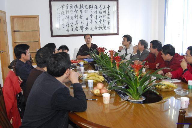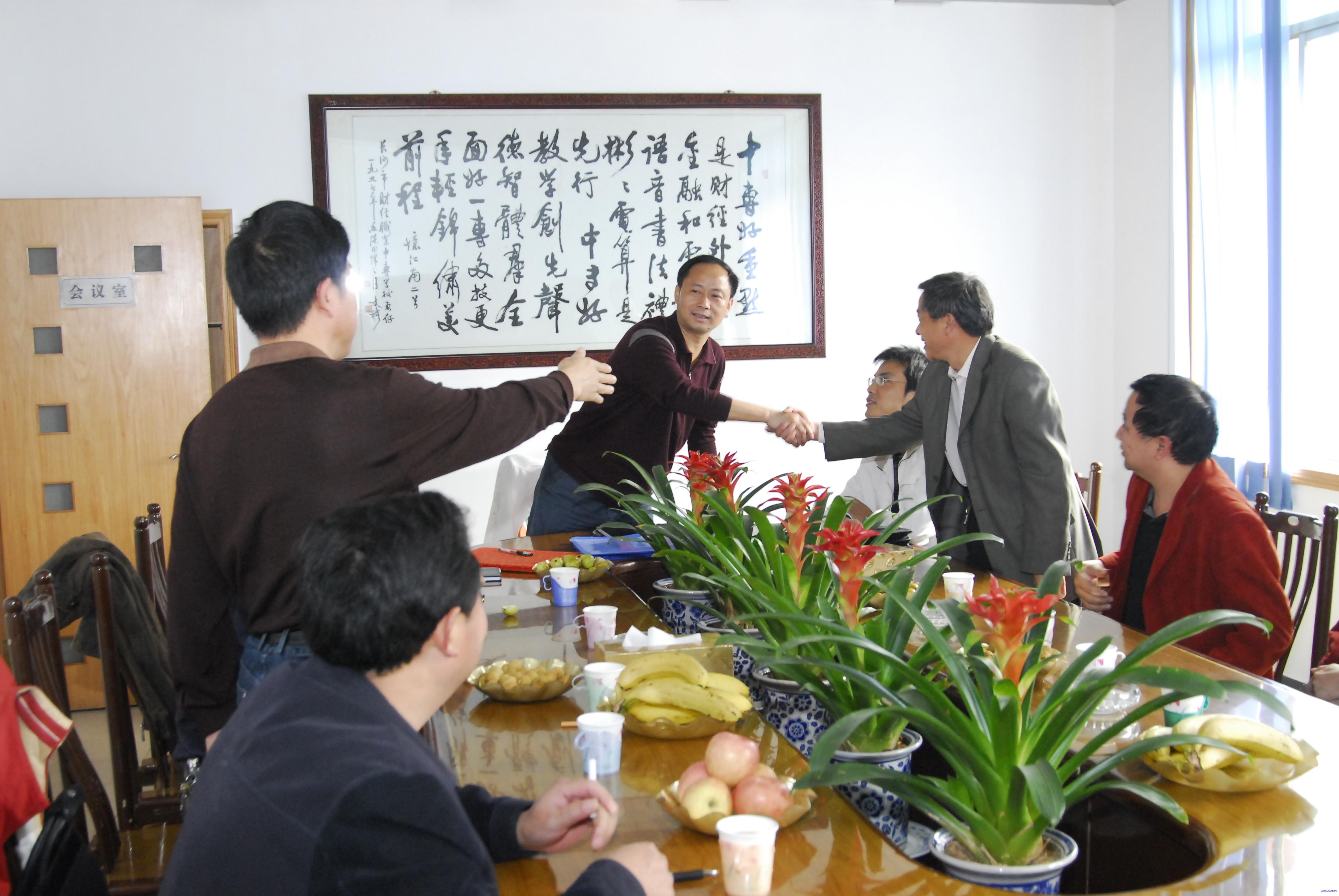 不顾旅途劳累,一下车,屈校长一行就直接来到我校三楼会议室,在观看了学校宣传片后,两位校长就两校的情况,特别是“省级示范校”的建设问题进行了详细交流。屈校长曾于2001年在我校进行挂职锻炼,至今对我校的人和事都还记忆犹新,所以整个交流的气氛非常热烈、和谐。两校办公室、教育处、教务处、总务处的主任一起进行了工作交流。