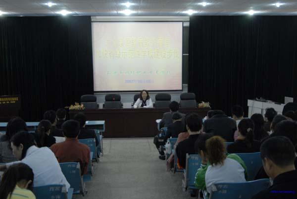 大会由学校党委书记黎辉同志主持,学校副校长冯庆珍同志就课堂教学改革与专业技能训练、考核作了重要讲话,学校教科室主任唐松林同志就省级精品专业的建设、精品课程开发、队伍建设、课题申报与研究等作了专题发言,提出了学校的创建措施和设想,大会明确了创建省级示范性学校的年度目标和要求。最后黎书记希望全校教职员工进一步解放思想,抓住机遇,加快改革,为实现党委提出的“一年初见成效,二年大见成效,三年成功挤身省级示范性学校行列”目标而扎实工作,真正将学校建设成为名副其实的省级示范校。(文/刘一心  摄影/赵建交)