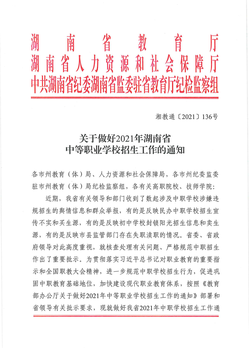 关于做好2021年我省中等职业学校招生工作的通知